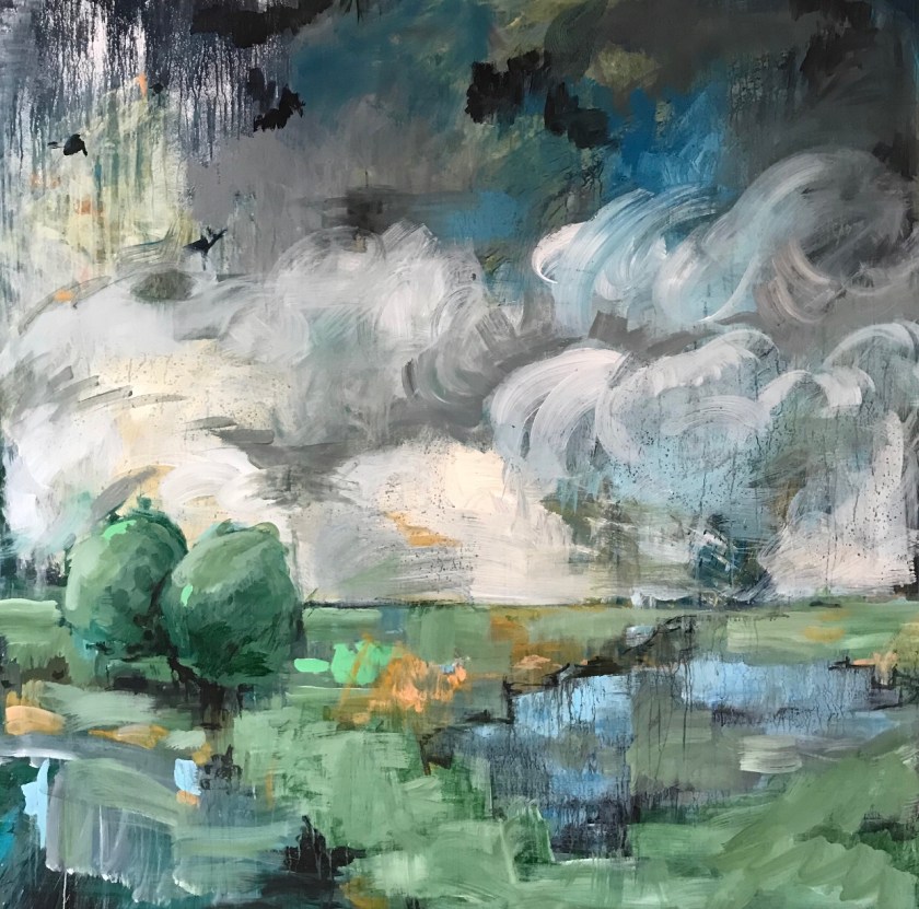 Landschap, acryl op canvas, 150 x 150 cm.