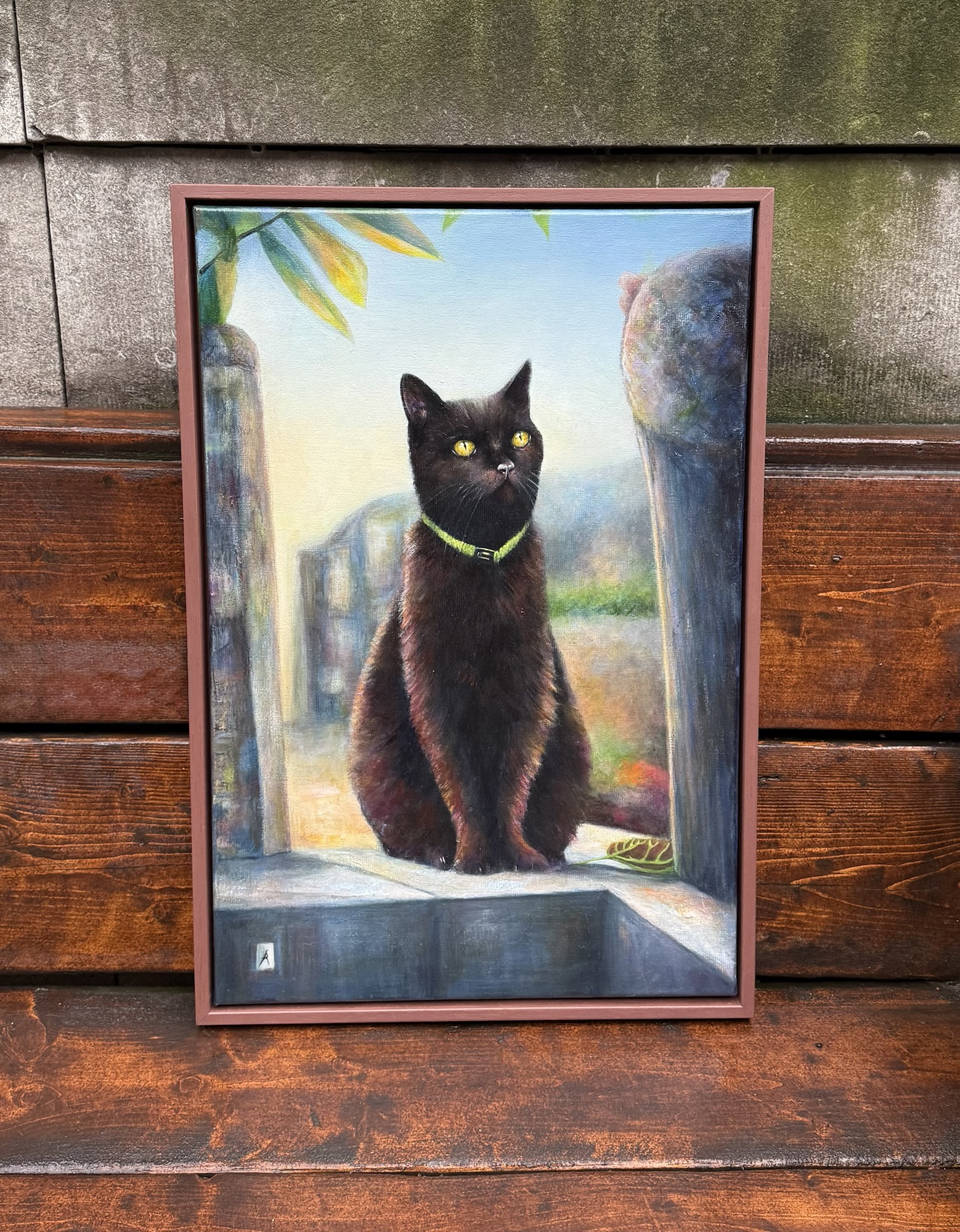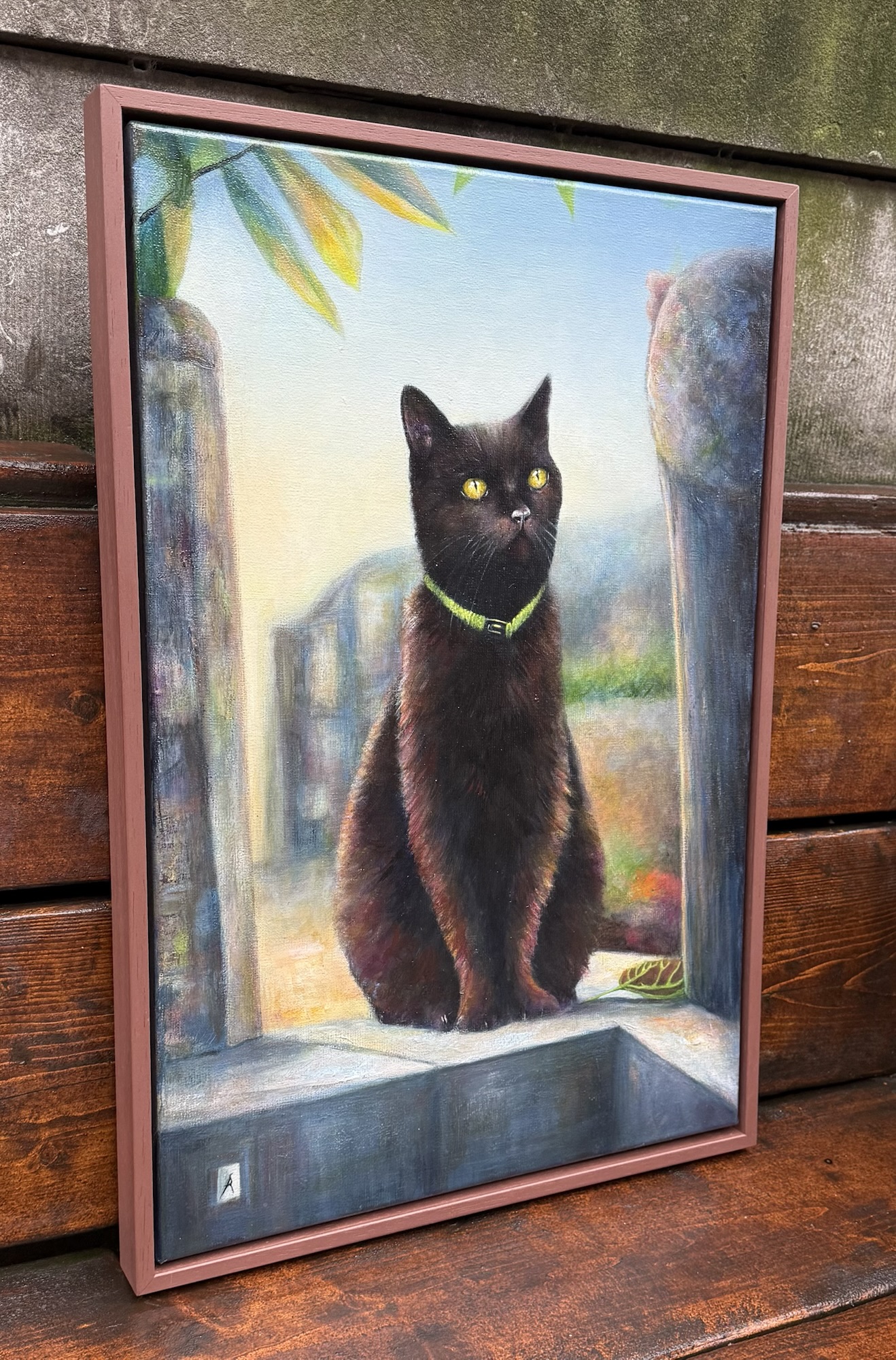 Zuidelijke hoornraaf, olieverf op paneel, 36 x 38 cm. Galerie Wiek XX.